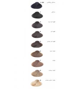 | شماره رنگ | بلوند ,بلوند تیره ,بلوند خیلی روشن ,بلوند روشن ,قهوه ای ,قهوه ای تیره ,قهوه ای روشن ,مشکی ,مشکی پر کلاغی |